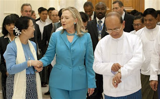 When President Barack Obama said Nov. 18 that Clinton would visit Myanmar, formerly known as Burma, he emphasized "flickers of progress" by President Thein Sein and American desires to "empower a positive transition." He said he'd received support for U.S. engagement from Myanmar's most famous democracy activist, Aung San Suu Kyi.